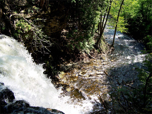 A branch of the Sixteen Mile Creek flows over the Niagara Escarpment at Hilton Falls Conservation Area. In the picture below I am at the edge of the 10m falls looking downstream.